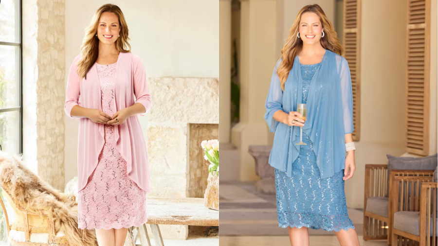 When a special occasion calls for elegance with ease, the Catherines Sparkling Lace Jacket Dress delivers a look that radiates confidence and grace. This two-piece ensemble—featuring a shimmering lace overlay paired with a coordinated jacket—has earned acclaim from wearers who describe feeling “like royalty” at milestone events such as weddings and anniversary celebrations.